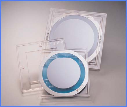 Shipping Mounted or Diced Wafers (When on Film Frames) | Clear Anti-Static (Standard) Black Conductive - Styrene (Optional) | Custom Shippers upon request | Film Frame I.D. / O.D. Film Frame Thickness Mylar / Film Thickness |